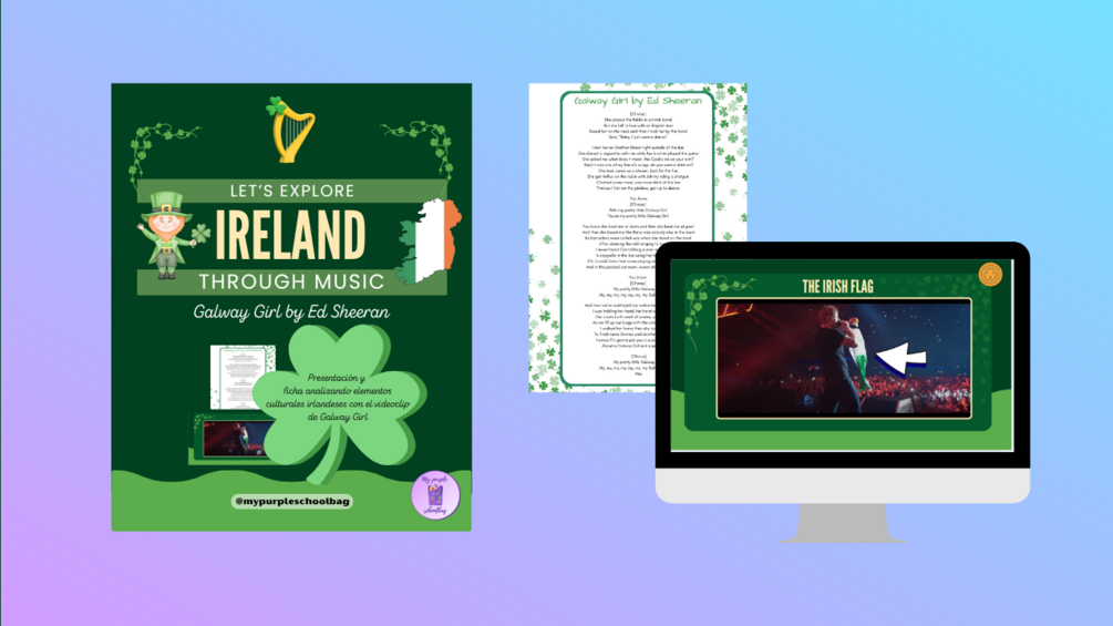 PDF con enlace a la presentación de Canva sobre el videoclip Galway Girl y PDF con ficha para trabajar la canción. //🇬🇧 PDF document including the link to the Canva presentation analysing Galway Girl and PDF document with a worksheet about the song..