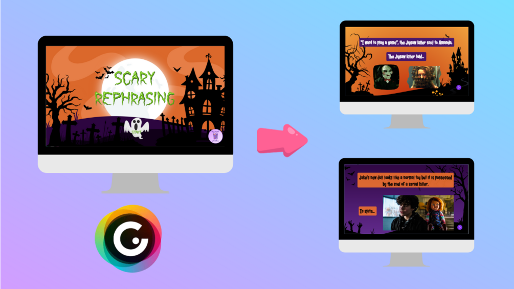 🇬🇧 Genially presentation with rephrasing exercises dealing with Halloween and horror films in order to revise grammatical structures.