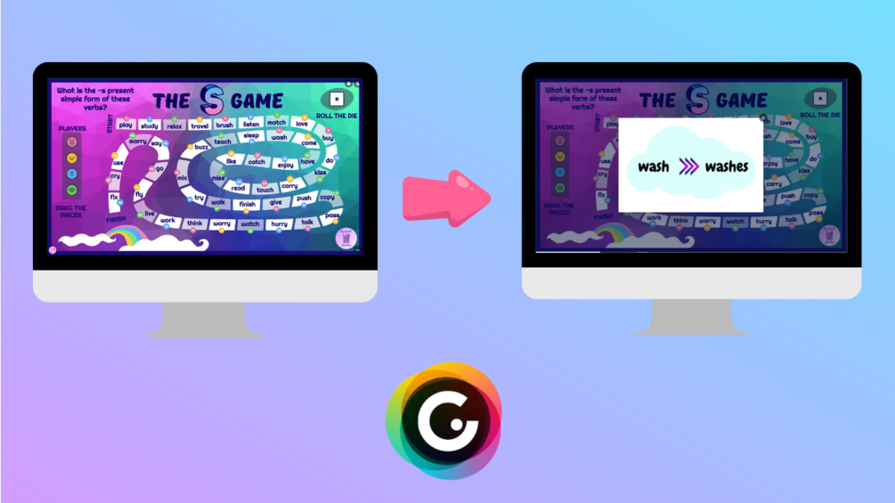 Juego de Genially para practicar la formación de los verbos en tercera persona singular del present simple.